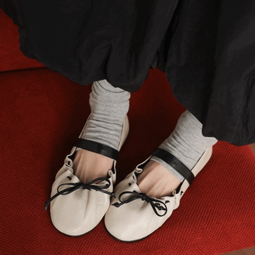 • 론데즈 마리 소프트 가죽 라운드 토 발레리나 플랫 슈즈