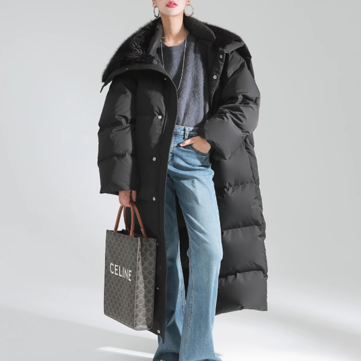 론데즈 모피 숄 카라 맥시 롱 패딩 구스 다운 점퍼