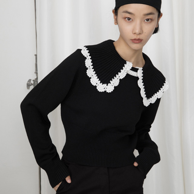 [당일배송제품]모다 와이드 빅카라 레이스 포인트 숏 니트 스웨터 2컬러