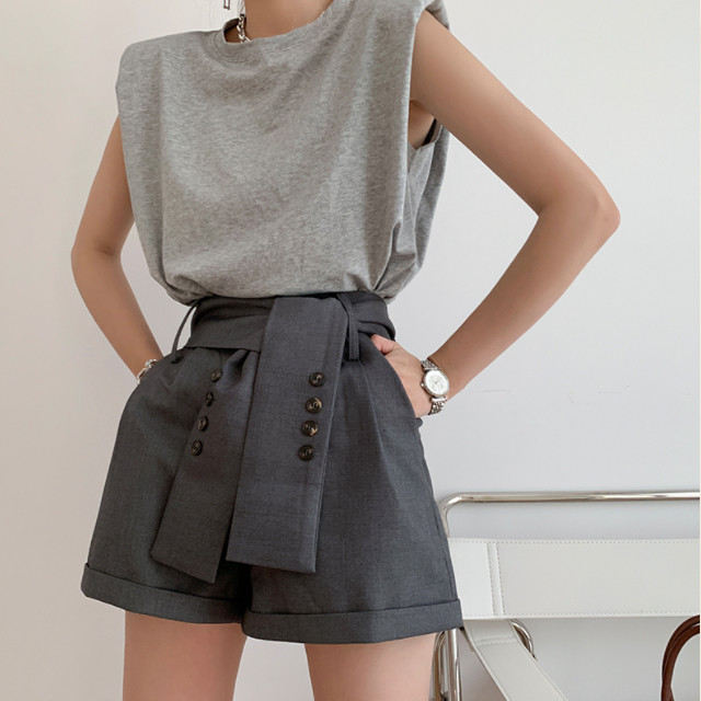 사나 하이웨스트 허리 바인드 와이드 레그 숏 팬츠 반바지