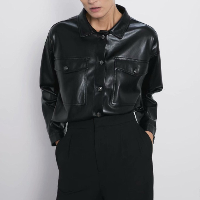 레자블라우스 도톰 더블포켓 PU 레더셔츠 기모 가죽셔츠