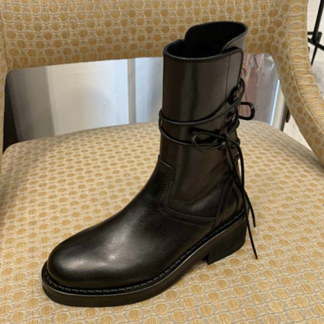 앤 드뮐 백 레이스업 가죽 수제 앵클 미들 부츠힐