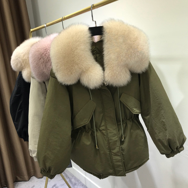 도톰 폭스퍼 카라 오리털 허리스트링 숏 야상 점퍼 3컬러