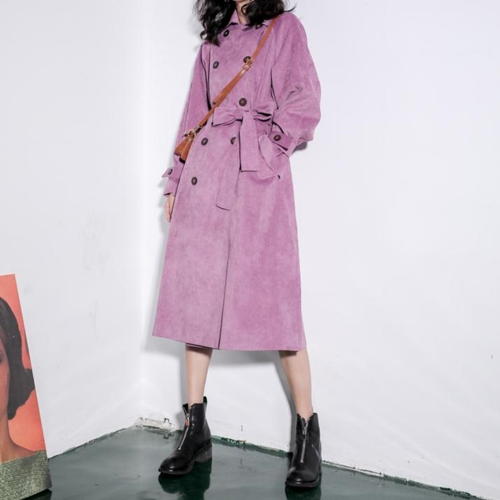 여성 코듀로이 봄 가을 간절기 타로 퍼플 골덴 트렌치 코트 자켓