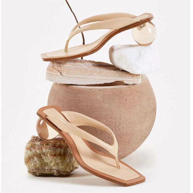 [론데즈메종] 크리스탈 굽 가죽스트랩 쪼리 뮬 샌들힐 3컬러
