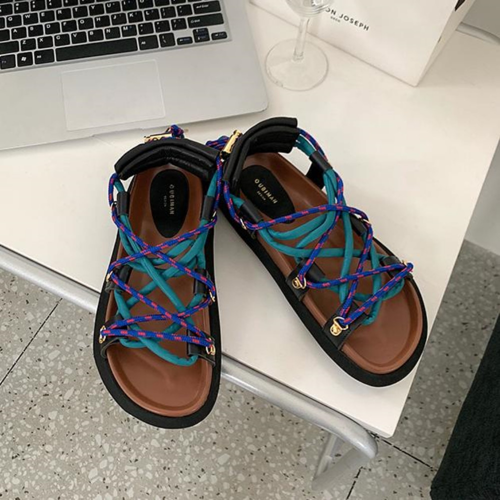 아우비 유니크 캠핑 로프 보헤미안 플랫폼 스트랩 샌들