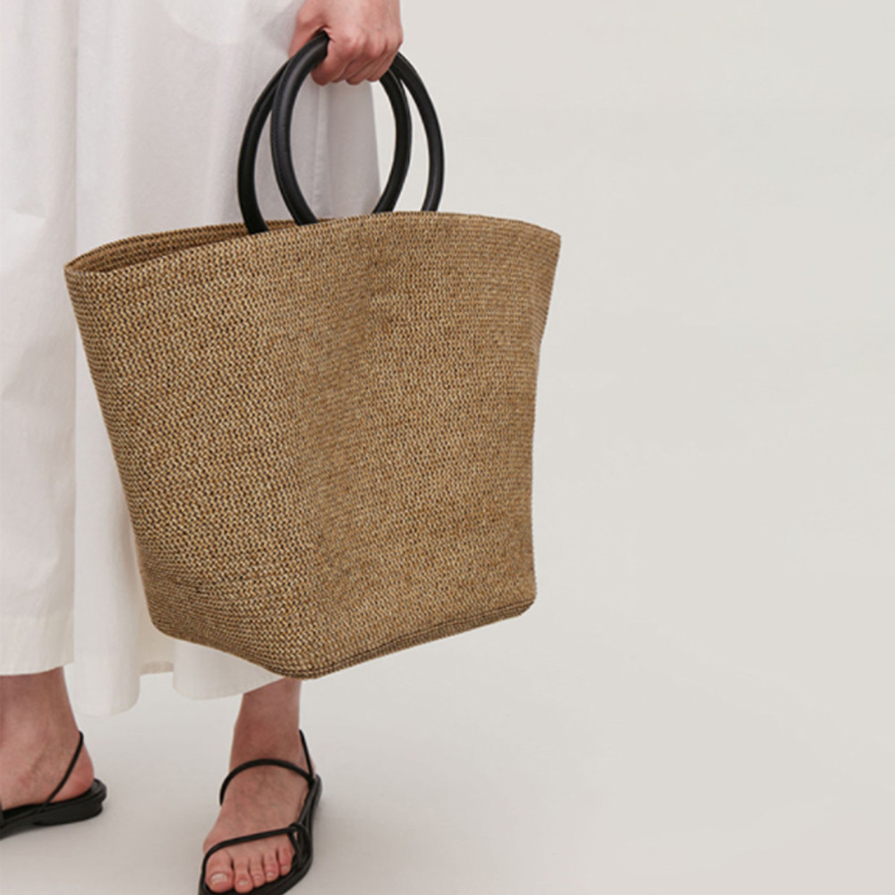 원형 손잡이 왕골가방 천연 라탄 여름 빅 밀짚 숄더백 빅백 비치 가방