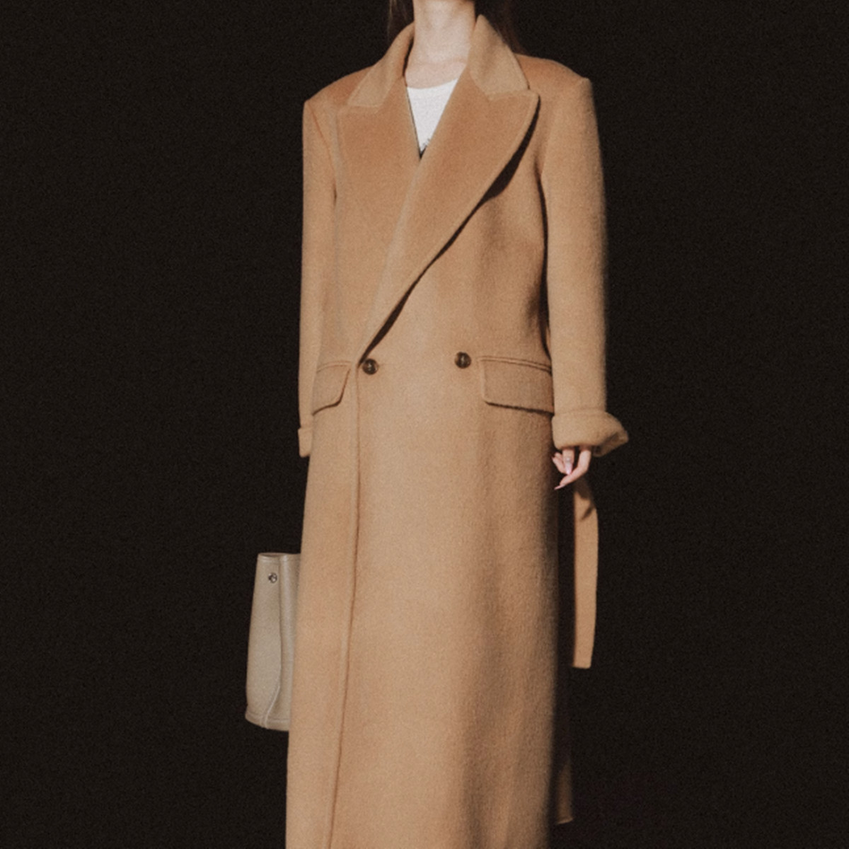 론데즈 프록 프렌치 알파카 울 100 핸드메이드 벨티드 와이드숄더 맥시 롱 코트