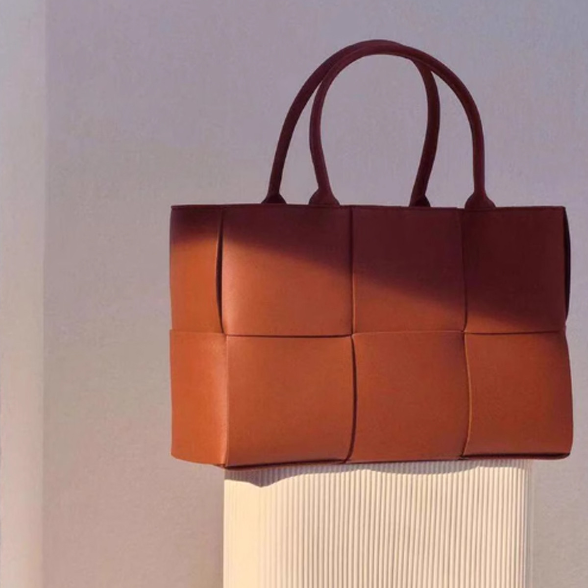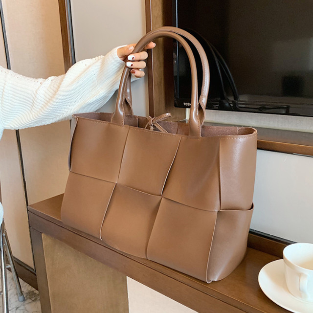 가죽 격자 짜임 스퀘어 빅 토트 숄더백 3컬러