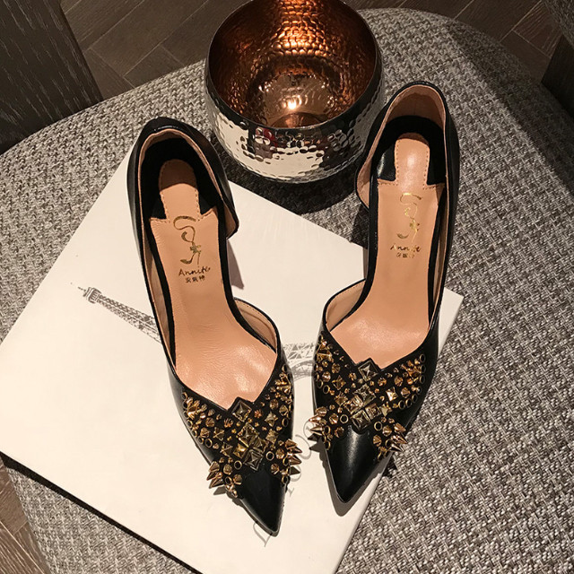 [론데즈메종] 유러피안 금장 리벳 락스터드 스틸레토 하이힐 (굽 3cm/8cm)