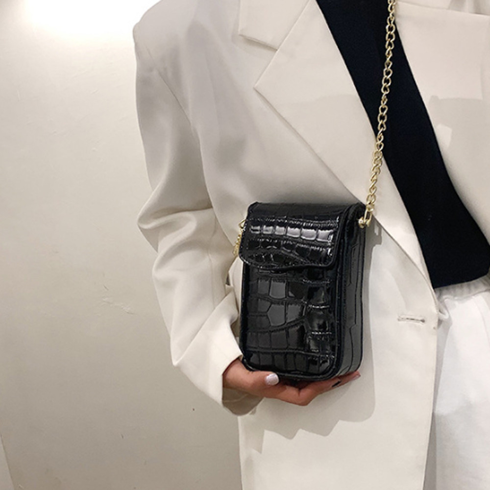 여성 크로커다일 가죽 골드체인 크로스백 미니 핸드폰 가방 4컬러