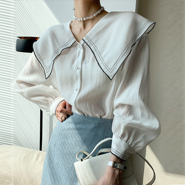 [론데즈메종] 뉴레트로 빅카라 퍼프소매 세라 블라우스 2컬러