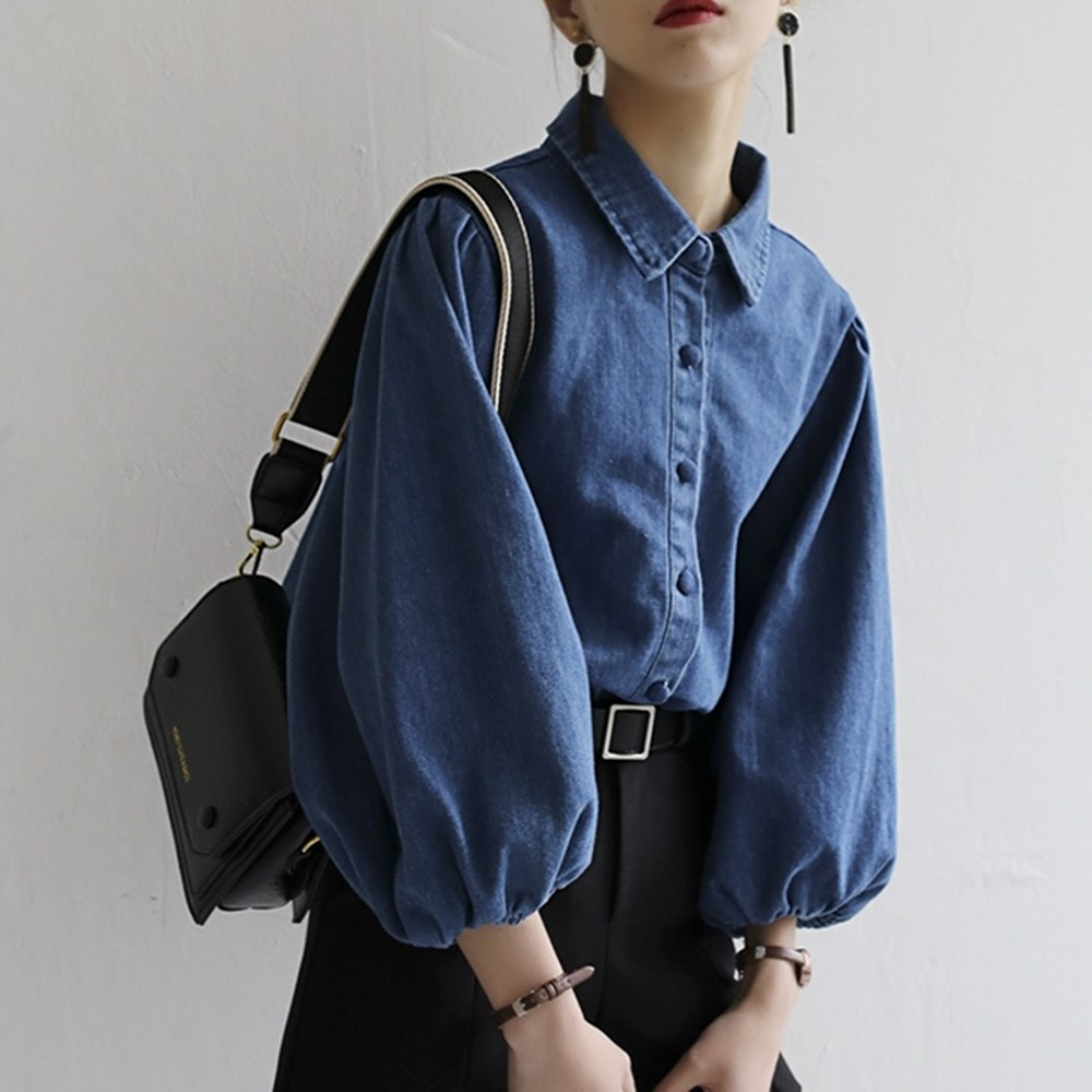 여자 봄 가을 데이트룩 퍼프소매 청 남방 자켓 데님 셔츠