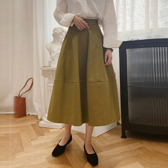 오드리 파리지앵 봄 하이웨스트 A라인 미디 스커트 2컬러