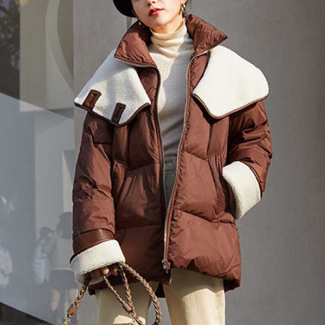 윙카라 후드 가죽패치 오리털 다운 숏 패딩 점퍼 3컬러