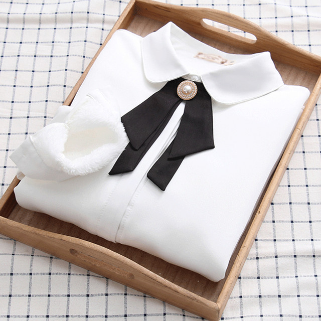 [론데즈메종] D리본 타이 블라우스 시폰 기모 벨벳 셔츠
