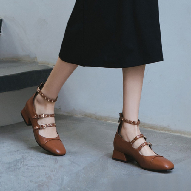 [론데즈메종] 메리제인 소가죽 슬림 버클 미들힐 (2Colors)