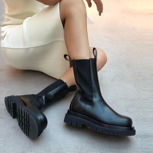 [론데즈메종] 베네 마틴 암소가죽 통굽 미들 부츠 굽5cm
