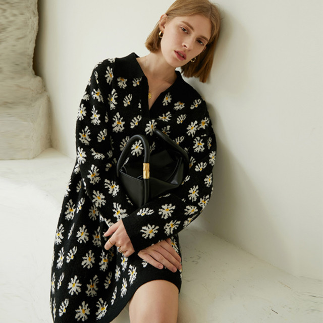 지디 데이지 폴로 긴팔 루즈핏 니트 미디 원피스