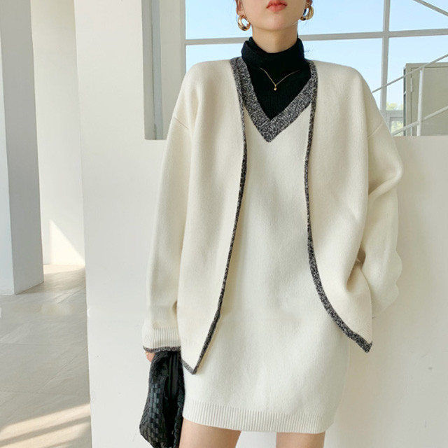[론데즈메종] 로얄 울 니트 조끼 원피스 가디건 세트 2컬러