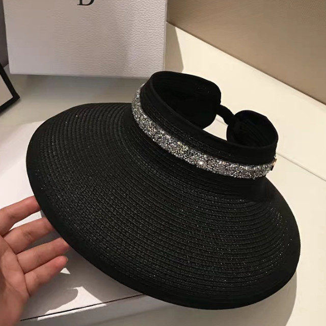 [론데즈메종] 여성 라피아햇 썬바이저 지르코니아 돔 챙 모자 (4Colors)
