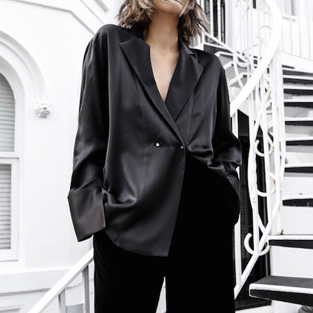 [론데즈메종] 레트로 오버사이즈 실키 새틴 광택 셔츠 자켓