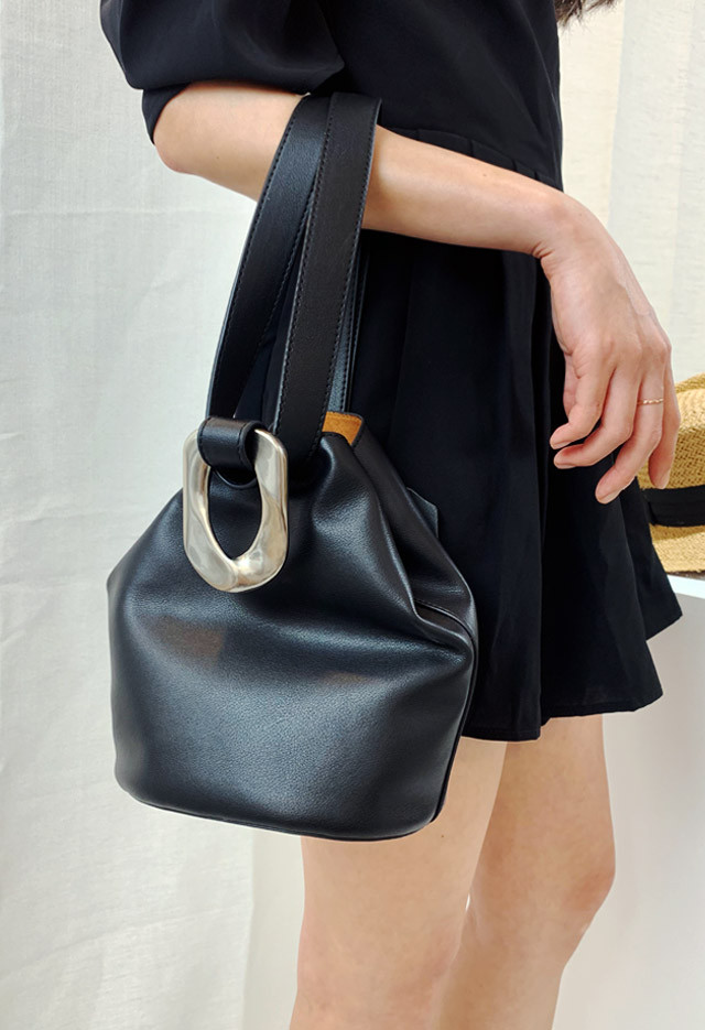 리얼소가죽 유니크 쉐입 볼드 금장 버클 버킷 토트백 (3Colors)