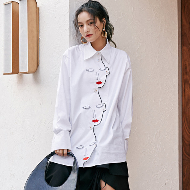 [론데즈메종] 레트로 립 아트 빅카라 박시핏 화이트 셔츠