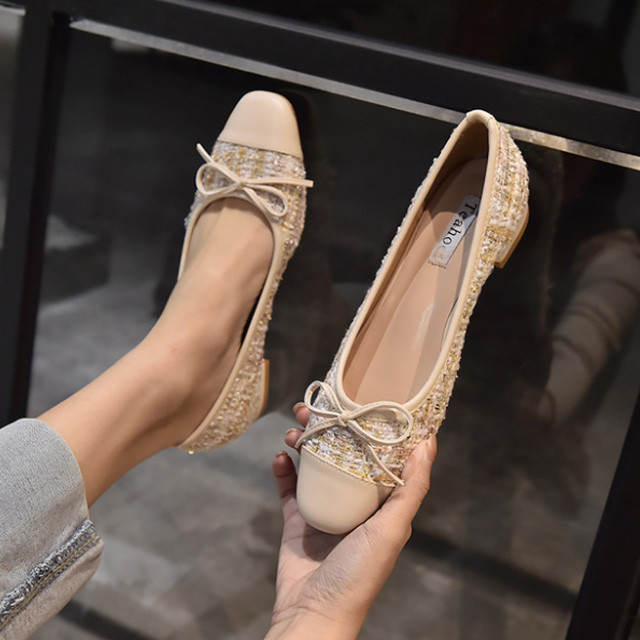 [론데즈메종] 트위드 발레리나 리본 플랫 슈즈 단화 2컬러