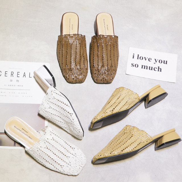 [론데즈메종] 레트로 위빙짜임 블로퍼 뮬 슬리퍼 (4Colors)