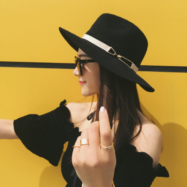 여름 라피아 블랙트리밍 리본 빅 챙 밀짚 모자