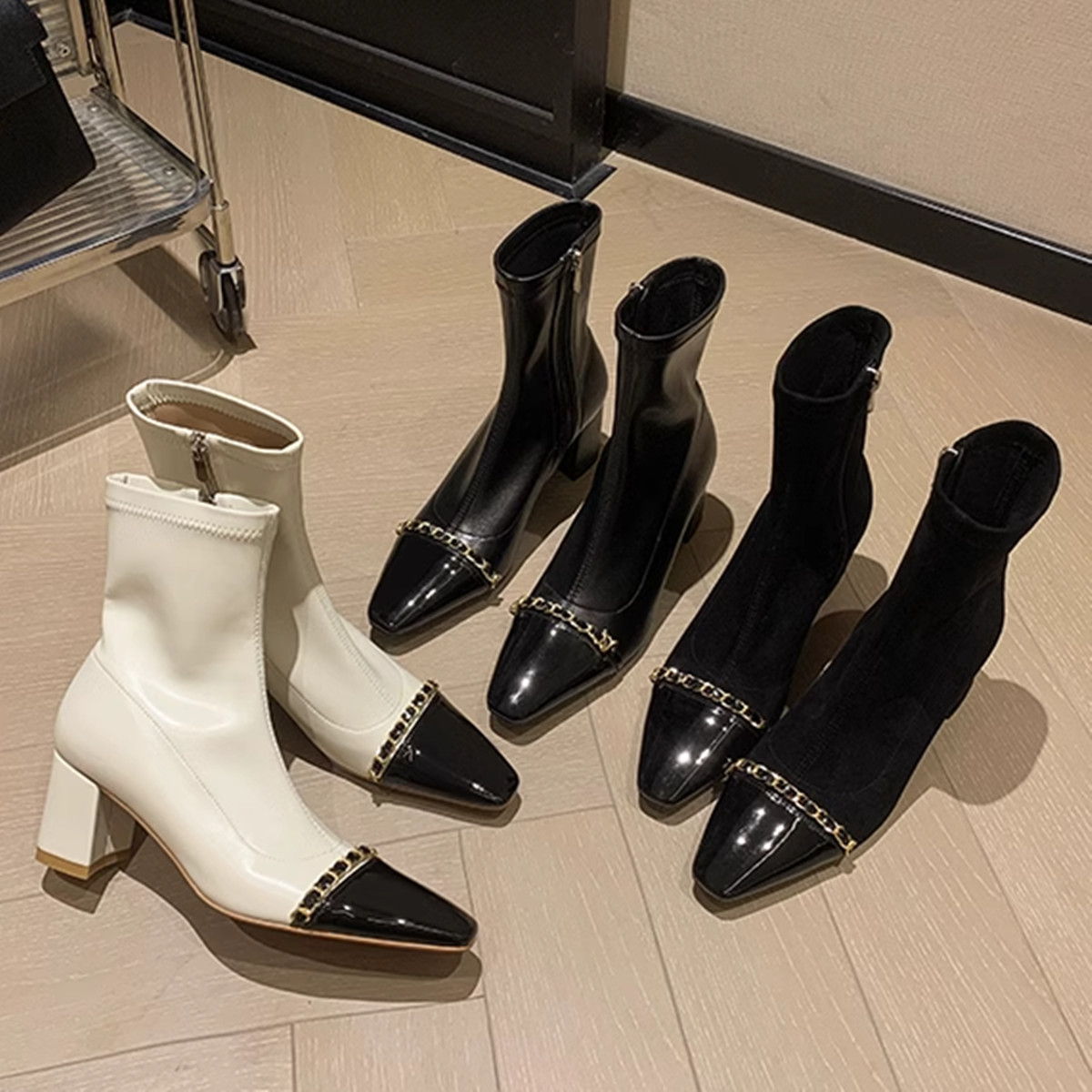 론데즈 체인 앵글 첼시 삭스 소가죽 스웨이드 통굽 부츠