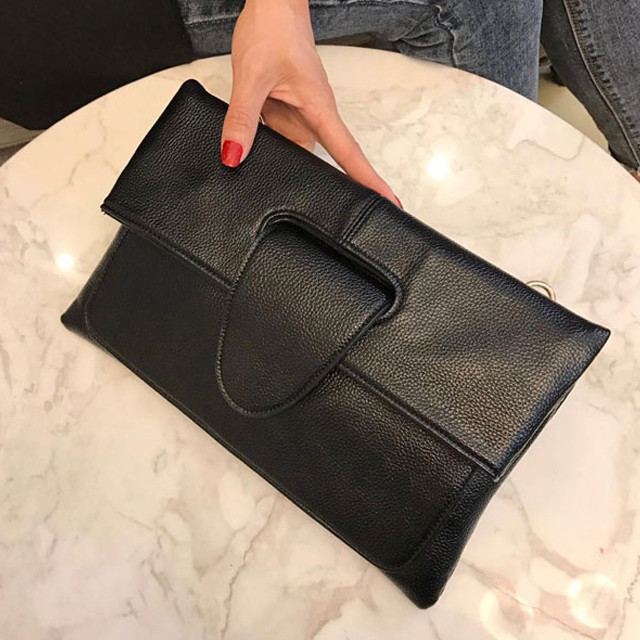 [론데즈메종] 암소가죽 솔리드 버클 스퀘어 클러치 숄더 크로스백
