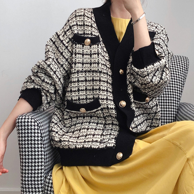 [론데즈메종] COCO 트위드 금장단추 루즈핏 니트 가디건 (2Colors)