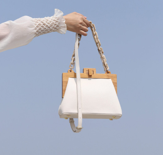 [론데즈메종] 아크릴 볼드체인 나무프레임 스퀘어 토트백 (2Colors)