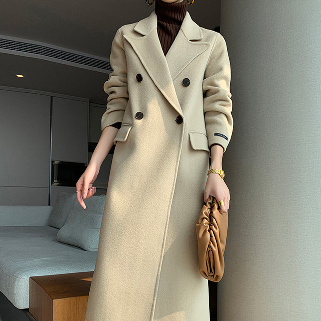 [론데즈메종] 클래식 H라인 울100% 일자핏 양면 울 더블 브레스트 롱코트