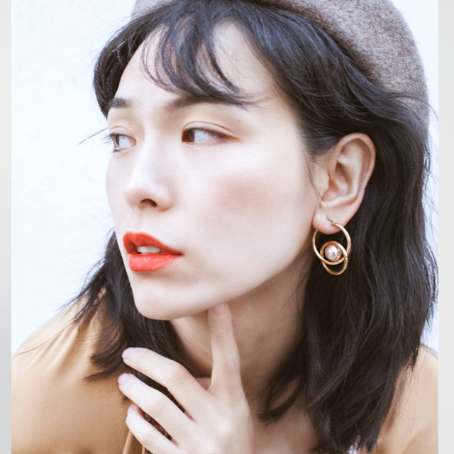 [론데즈메종] 프렌치 더블 써클 진주 18K 도금 링 귀걸이