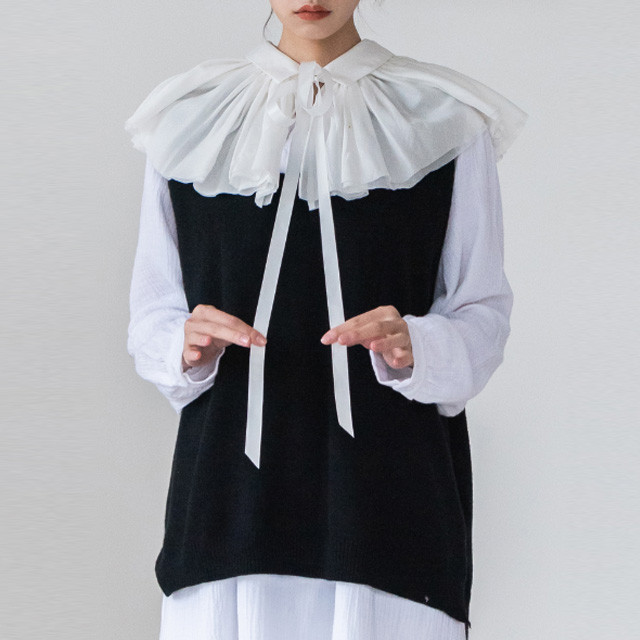 [론데즈메종] 러블리 프릴 레이스 넥케이프 페이크 레이어드 빅 넥카라