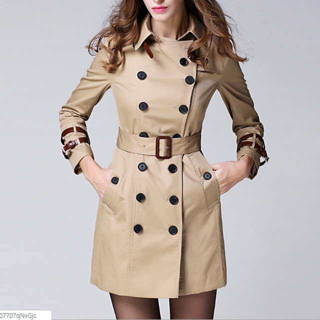 론데즈 봄가을 버드 개버딘 더블브레스트 미들 트렌치 코트 자켓
