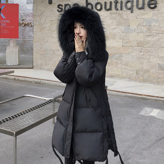 [론데즈메종] 사이드 리본 슬림 오리털 라쿤퍼 롱패딩 점퍼