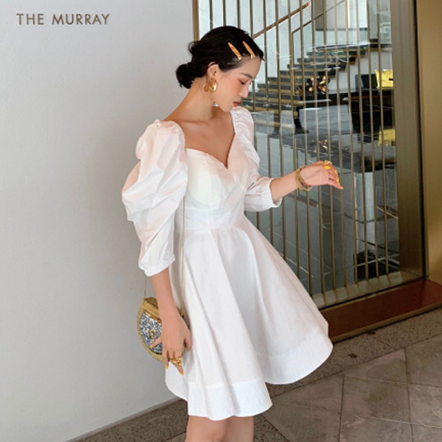 [론데즈메종] 바비라인 V넥 퍼프슬리브 복고 미니 원피스 (2Colors)