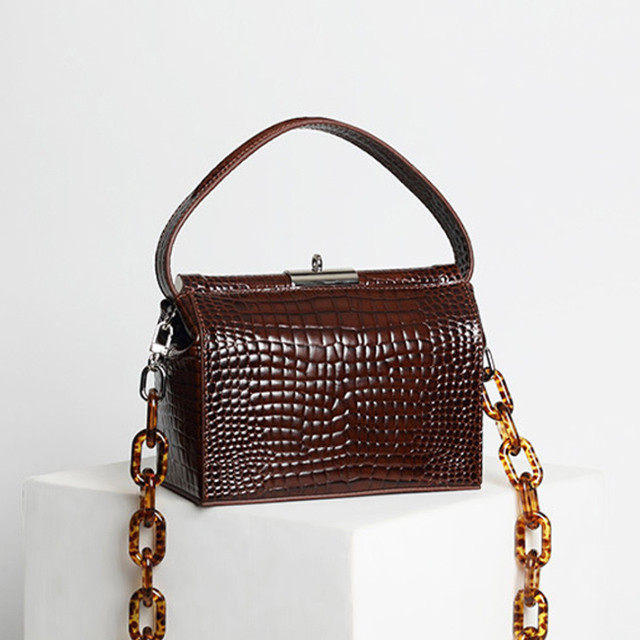 [론데즈메종] 볼드체인 리얼가죽 크로커다일 스퀘어 토트백 (4Colors)