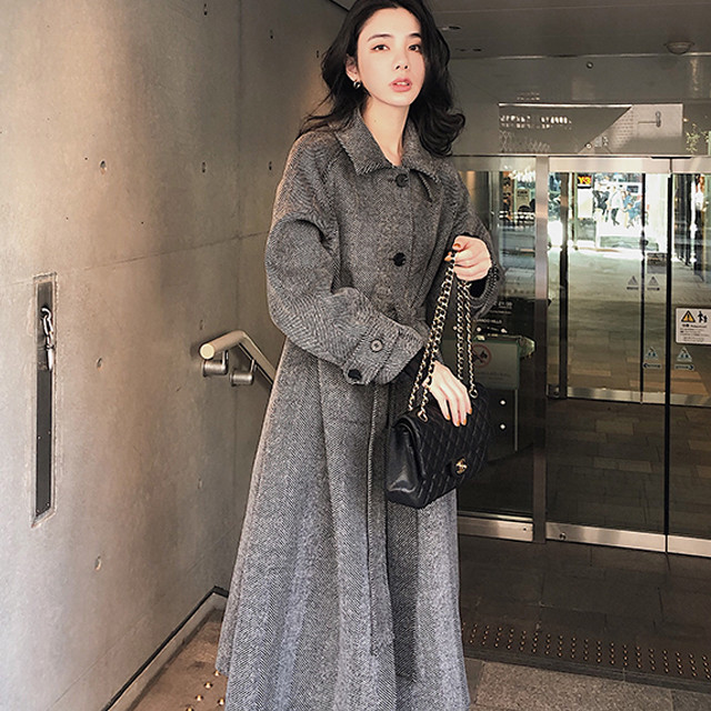 [론데즈메종] 오드리 헤링본 양면 울100% 롱코트