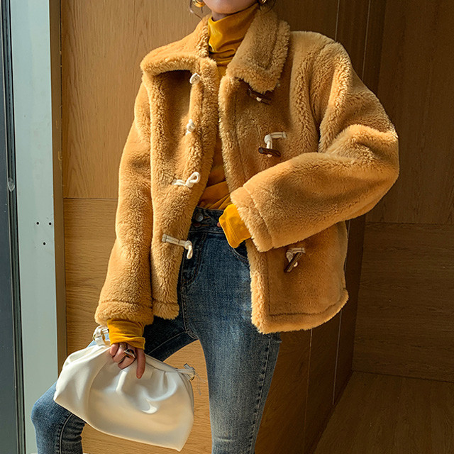 [론데즈메종] 머스터트 페이크양털 모피 더플 숏코트
