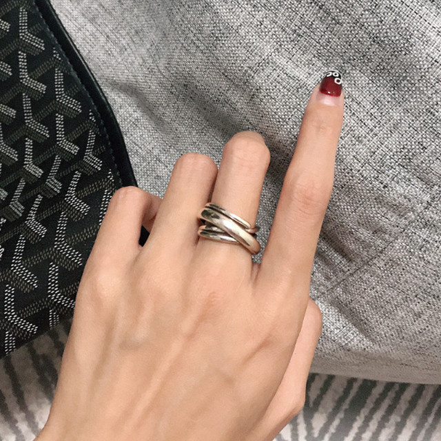 [론데즈메종] 실버925 언발 레이어드 볼드 링 레트로 은반지