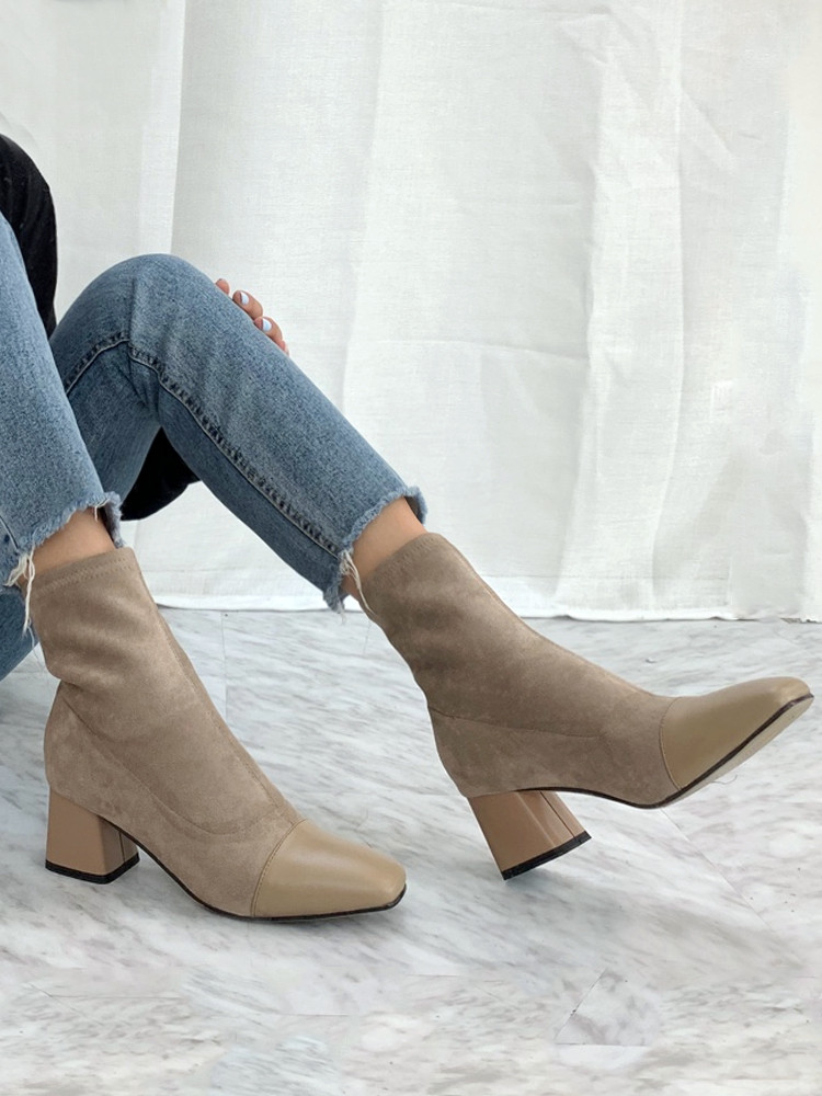 스퀘어 슬림스트레치 리얼소가죽 마틴 니삭스 앵클 숏부츠힐 3컬러