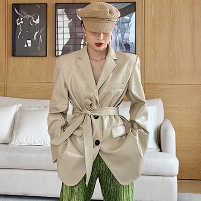 [론데즈메종] 레트로 오버핏 정장 싱글 PU가죽 자켓 (2Colors)