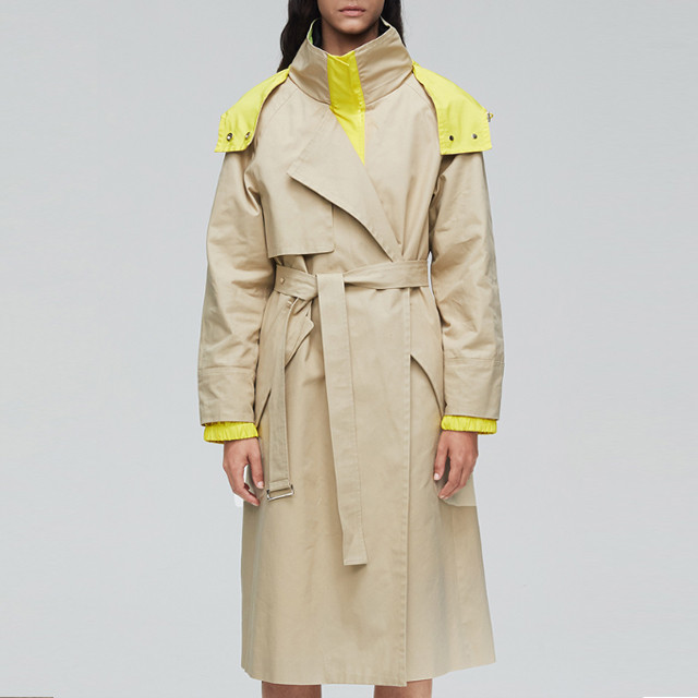 [론데즈메종] 잉글랜드 네온컬러 포인트 후디 트렌치 롱자켓 코트 (2Colors)