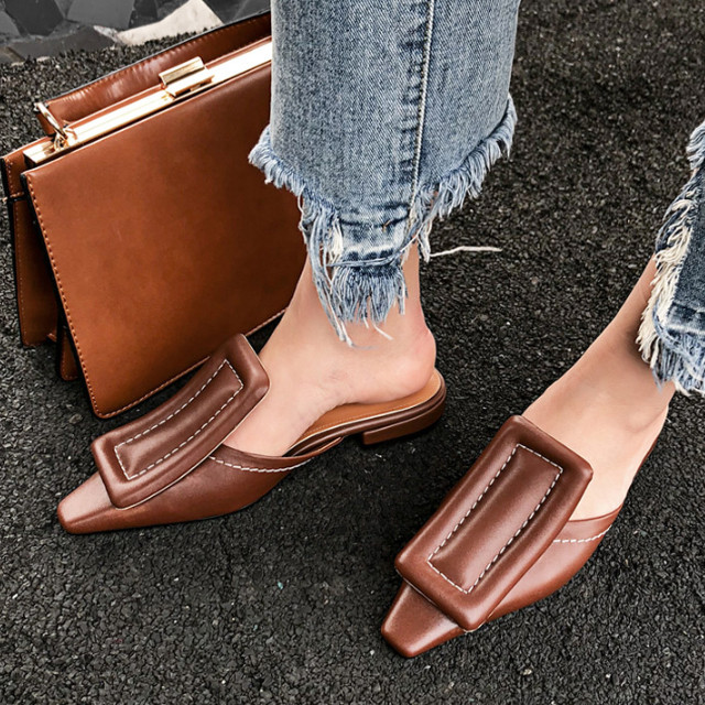 [당일배송제품] 유러피안 리얼소가죽 빅스퀘어 뮬 블로퍼 샌들 (3Colors)