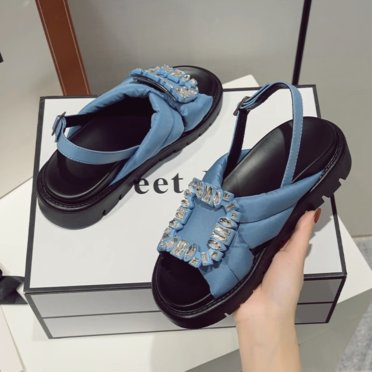 패딩 어글리샌들 슬링백샌들 큐빅 피셔맨 벨크로 찍찍이 스트랩 양가죽 청키 플랫폼